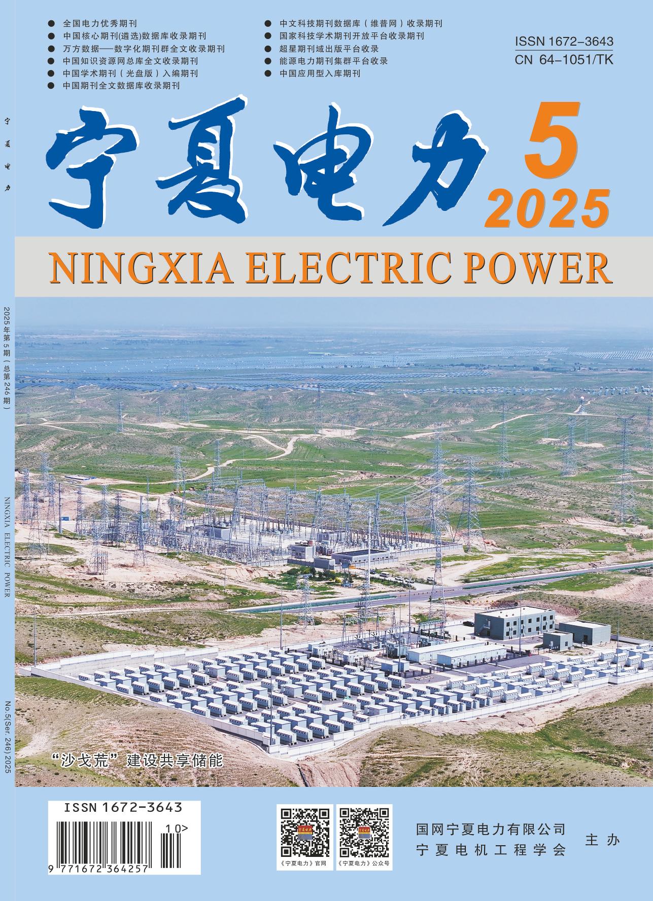《宁夏电力》期刊于1971年创刊,是国网宁夏电力有限公司主管,国网宁夏电力有限公司和宁夏电机工程学会主办的专业技术性刊物,由国网宁夏电力有限公司电力科学研究院《宁夏电力》期刊编辑部编辑出版、国内外公开发行的电力专业技术类期刊(ISSN 1672-3643/CN 64-1051/TK),双月刊,遵循党和国家有关“百花齐放,百家争鸣”和“跟踪电力科技前沿,植根宁夏电力实践,传播最新科技成果,推动电力科技进步”的办刊方针。多次被评为全国优秀电力期刊和宁夏优秀科技期刊。